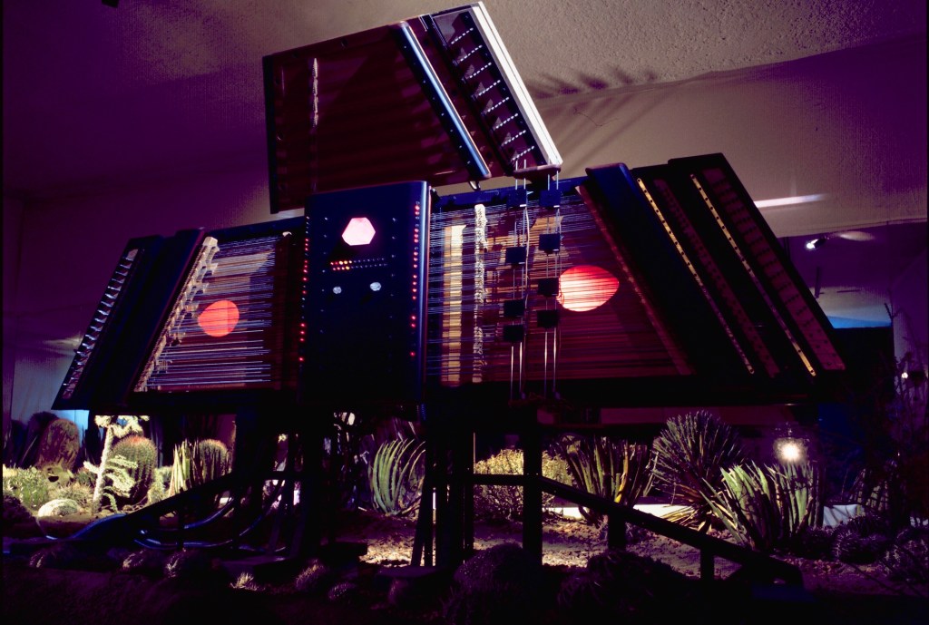 El eje principal de investigación del Laboratorio ha sido –desde sus inicios– la resonancia en múltiples manifestaciones. Las investigaciones han derivado en el diseño y construcción de máquinas que son al mismo tiempo mecanismos de investigación e instrumentos sonoros. Los primeros instrumentos que construimos para explorar la resonancia en cuerdas fueron el Espejo Plasmaht (1990-1995) y el Plasmaht Laúd (1998-2004).